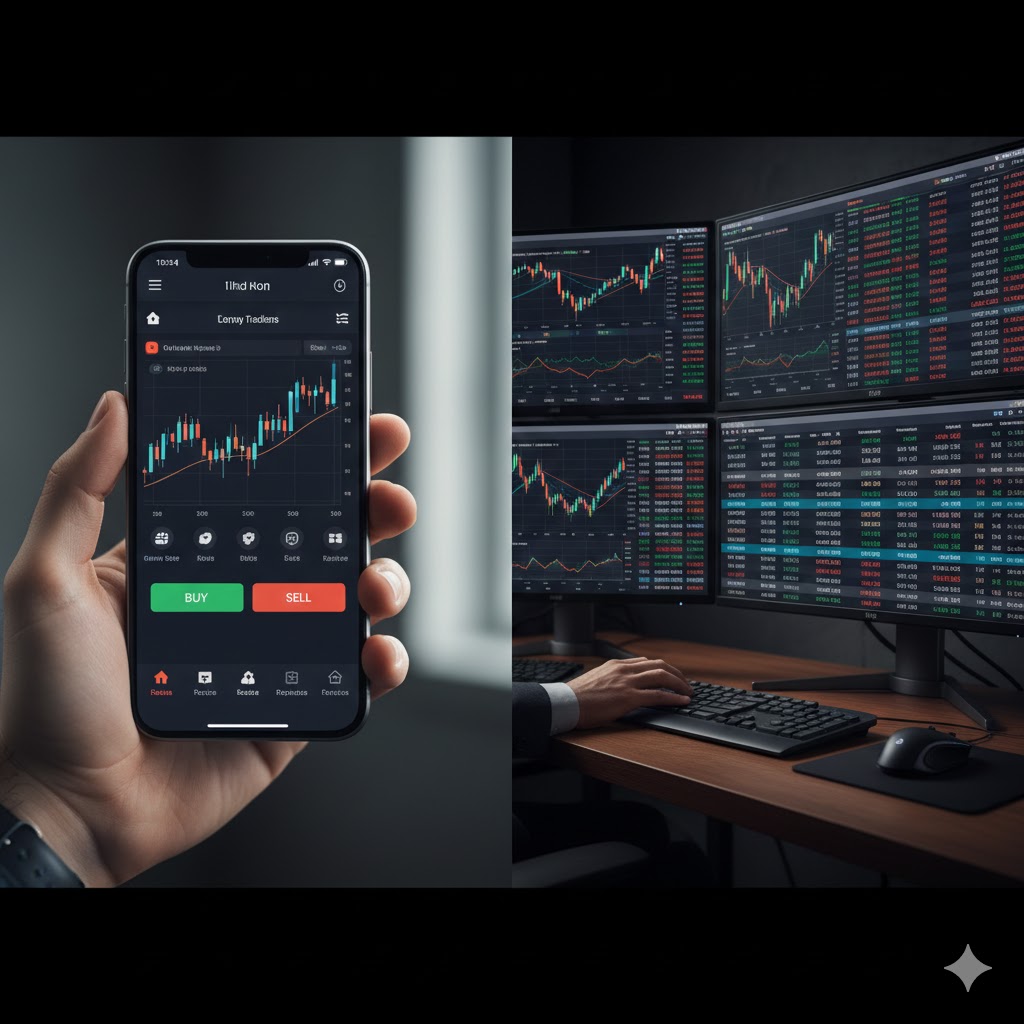 create image for; trading-platform-comparison.jpg – “A close-up of a smartphone screen displaying a Danish investment app with US stock quotes for Apple and Microsoft, showing live green and red price movements against a professional financial background.”