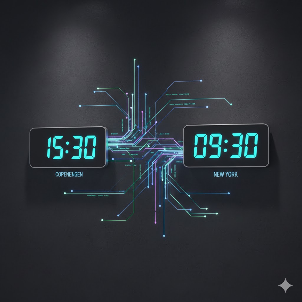 En af de mest oversete faktorer for danske investorer er overgangen til sommertid, som ikke altid falder sammen i USA og Europa. I 2026 skifter USA til sommertid søndag den 8. marts, mens Danmark først skifter søndag den 29. marts. I denne mellemliggende periode på tre uger er tidsforskellen kun 5 timer i stedet for de sædvanlige 6 timer, hvilket betyder, at det amerikanske marked åbner allerede kl. 14:30 dansk tid og lukker kl. 21:00.